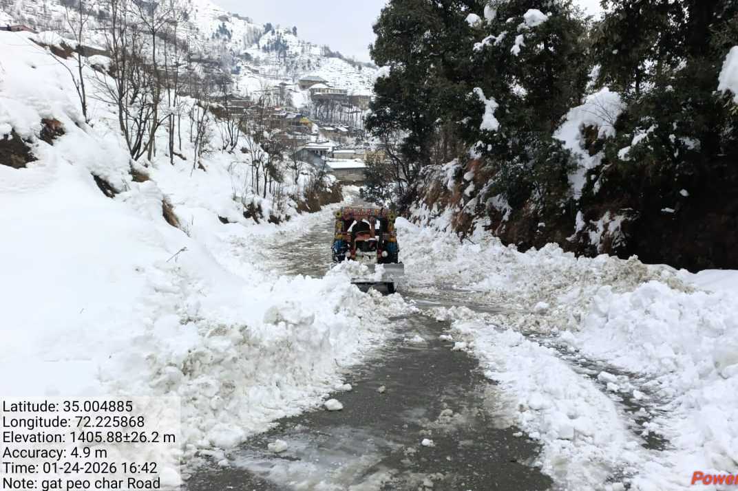 Partially restoredThis activity provides a detailed overview of the operational status of the Road Gat Peochar Road, recorded on 23 January, 2026. The affected site is situated within the Swat district, operating under the administrative jurisdiction of XEN Swat II Matta. The infrastructure has been primarily affected by Snow Clearance, encompassing a total span of 10 Kilometers.