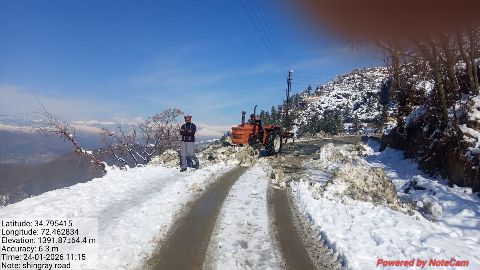 Partially restoredThis activity provides a detailed overview of the operational status of the Road Manglawar Shingrai Road, recorded on 24 January, 2026. The affected site is situated within the Swat district, operating under the administrative jurisdiction of XEN Swat I Saidu Sharif. The infrastructure has been primarily affected by Snow Clearance, encompassing a total span of 9 Kilometers.