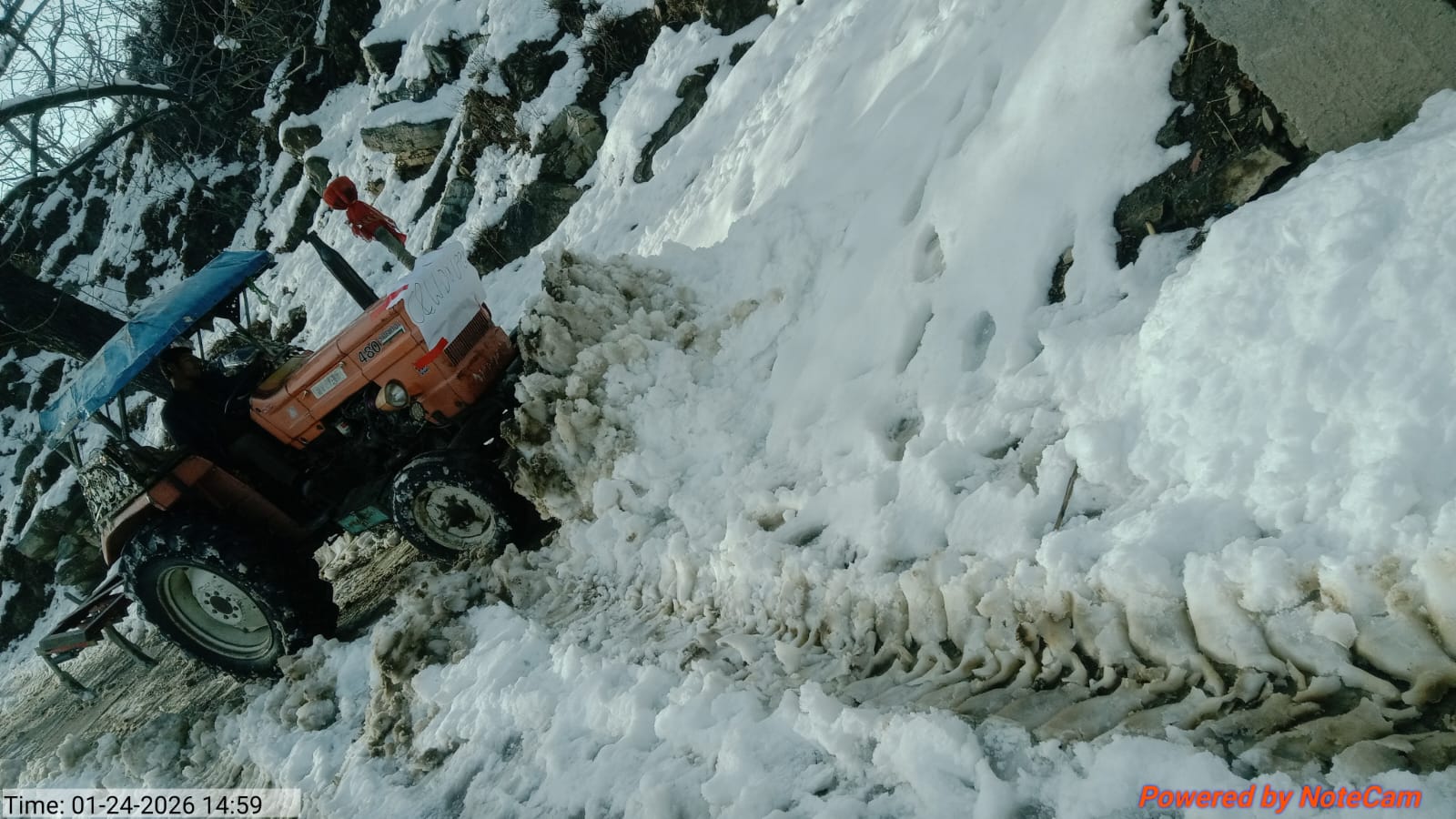 Environmental conditions at the site indicated an average recorded snow depth of 1.00 inches. Restoration and clearance efforts were facilitated by the deployment of Tractor , which remained in active operation for a duration of 2 hours . In a formal assessment of the situation, the reporting officer noted with remarks: Snow height increases from start to the end of road. Two tractors have been mobilized and the road is almost clear. Kair Dara consists of Nalu Road, Shamorgar Road, Muto Road, Kair Khass Road.