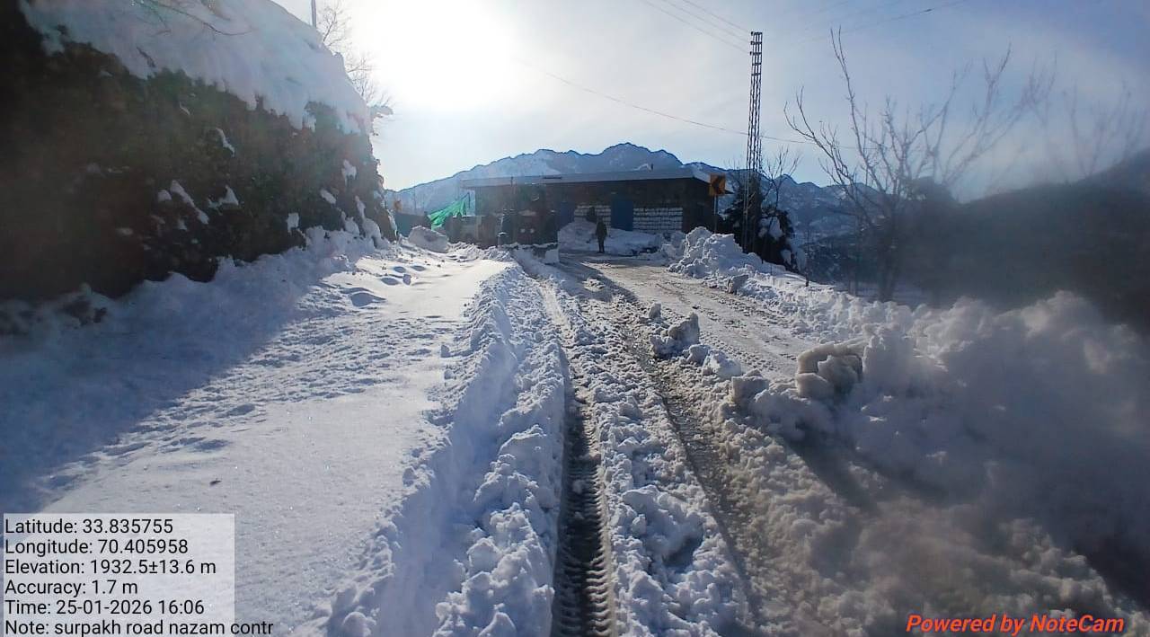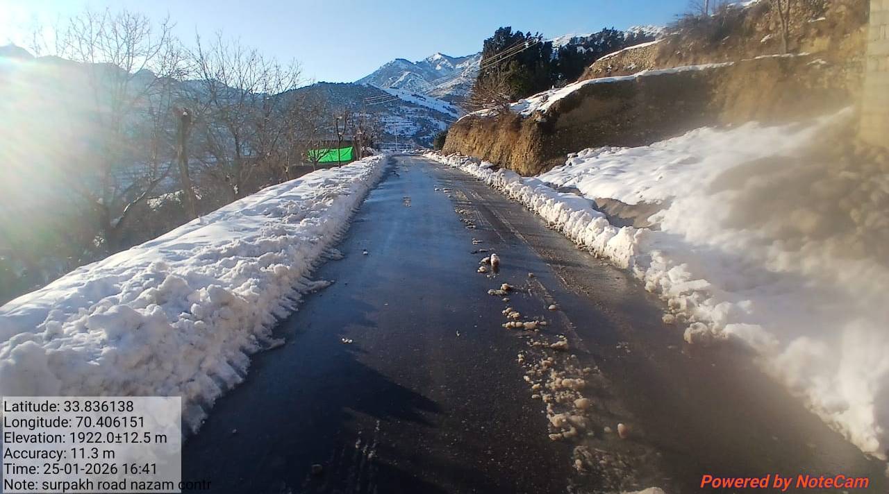 Fully restoredThis activity provides a detailed overview of the operational status of the Road Sarpakh to Sarpakh tanga road, recorded on 26 January, 2026. The affected site is situated within the Kurram district, operating under the administrative jurisdiction of XEN KURRAM LOWER. The infrastructure has been primarily affected by Snow Clearance, encompassing a total span of 4 Kilometers.