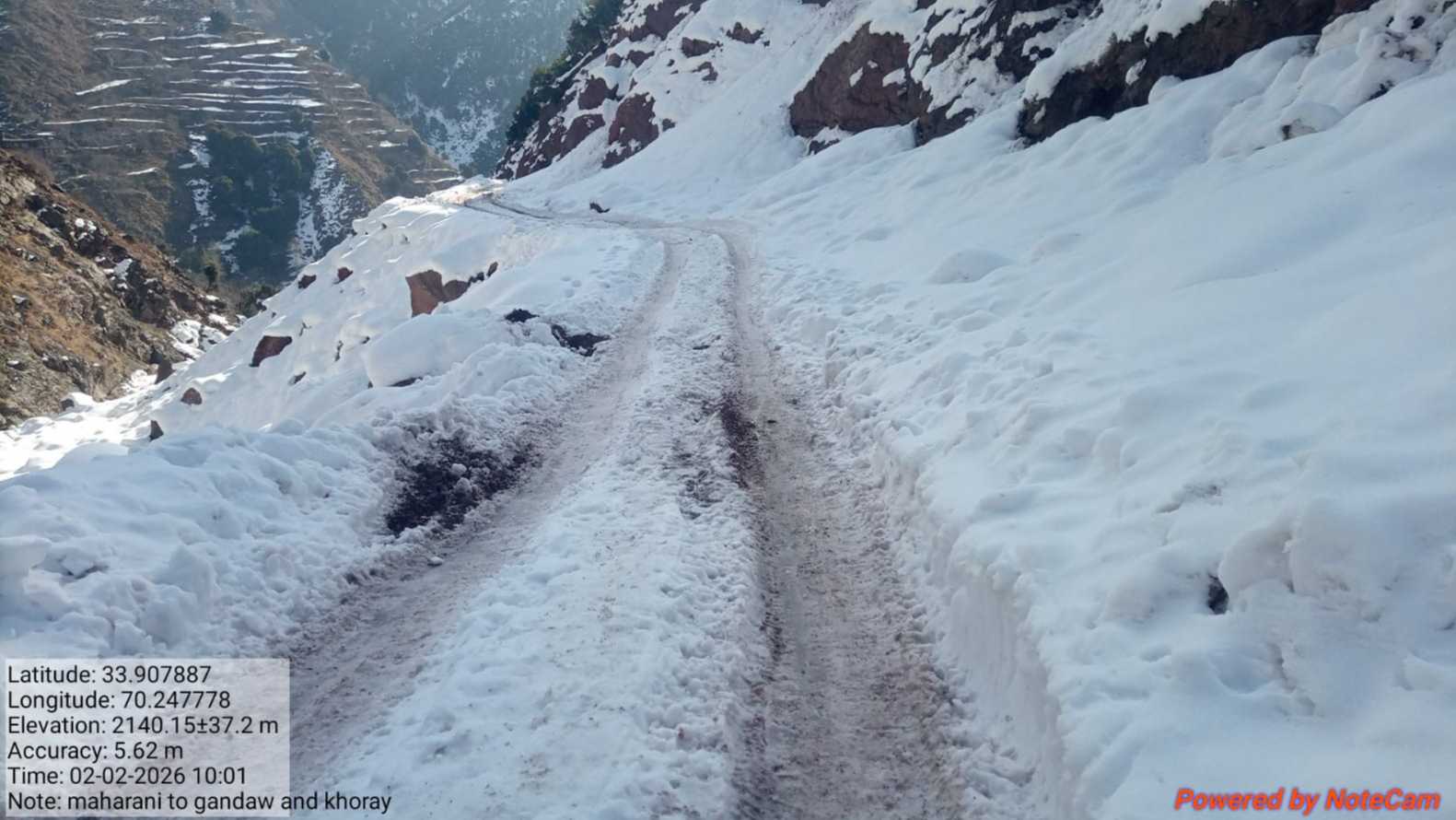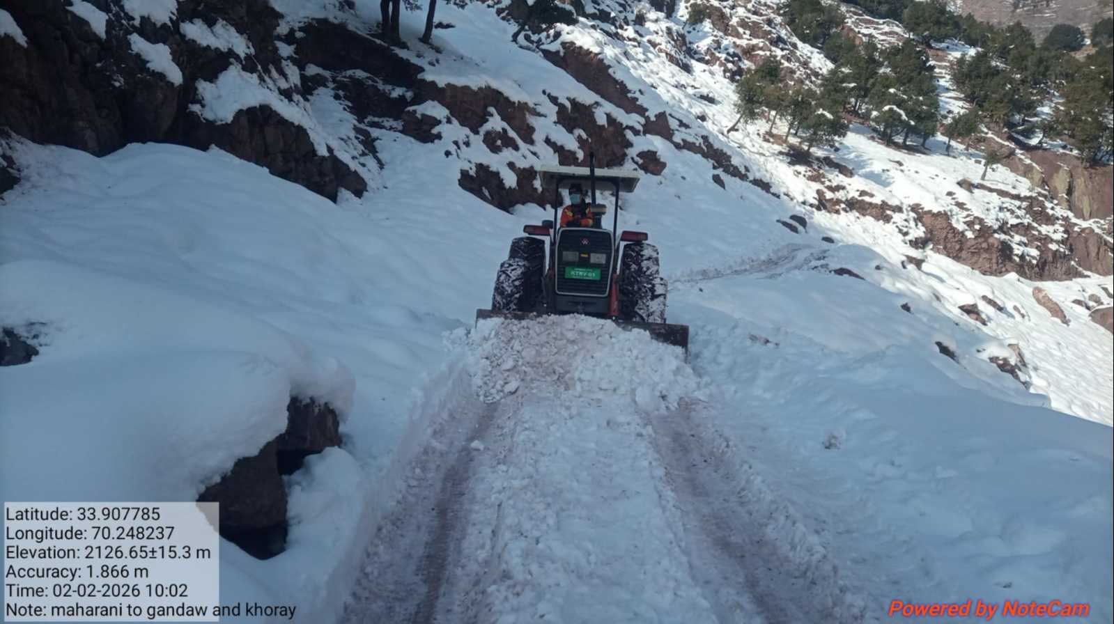 Fully restoredThis activity provides a detailed overview of the operational status of the Road Maharani to Gandaw and Khoray, recorded on 2 February, 2026. The affected site is situated within the Kurram district, operating under the administrative jurisdiction of XEN KURRAM LOWER. The infrastructure has been primarily affected by Snow Clearance, Surface of road, encompassing a total span of 10 Kilometers.