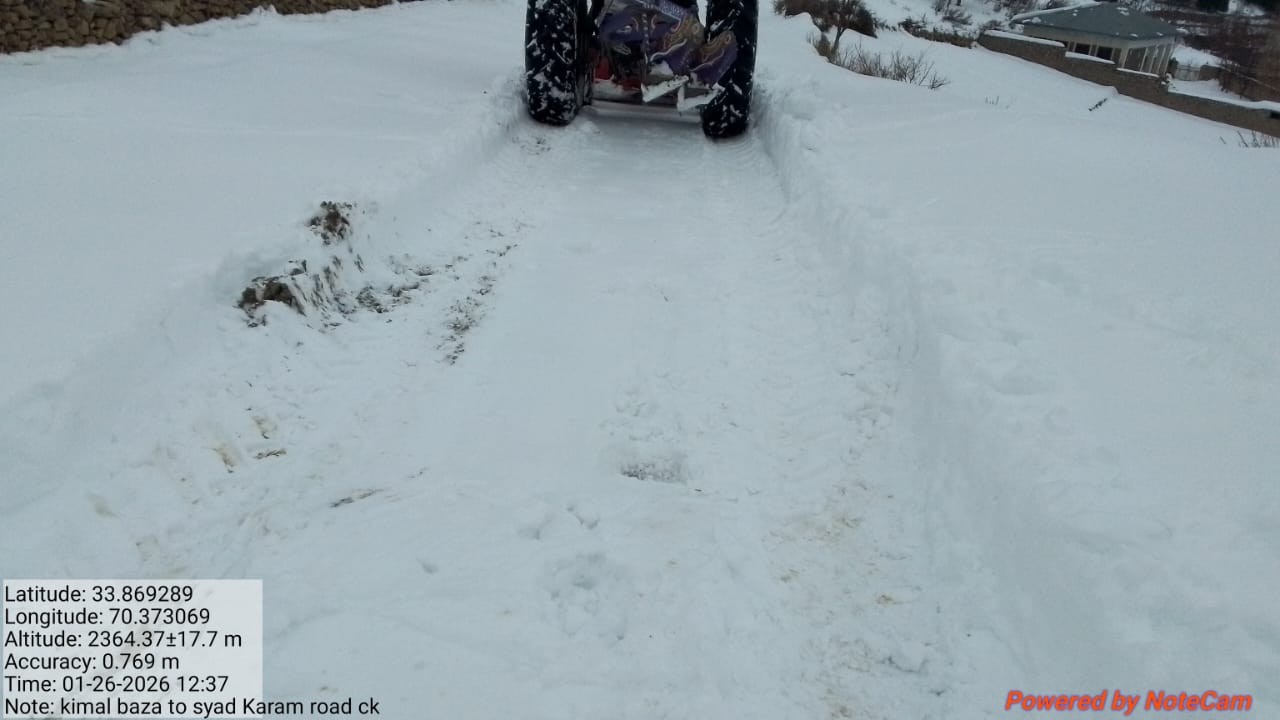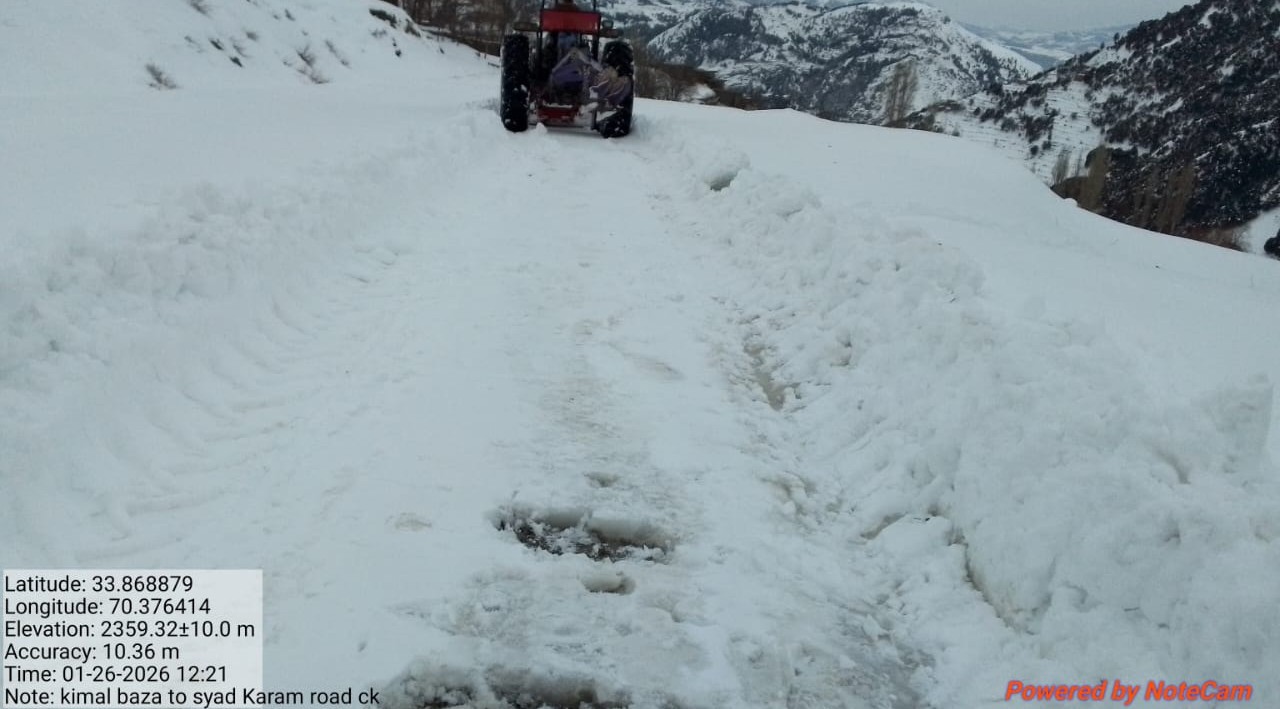 Fully restoredThis activity provides a detailed overview of the operational status of the Road Kimal Baza to Syed Karam…, recorded on 26 January, 2026. The affected site is situated within the Kurram district, operating under the administrative jurisdiction of XEN KURRAM LOWER. The infrastructure has been primarily affected by Land Sliding, Surface of road, encompassing a total span of 7 Kilometers.