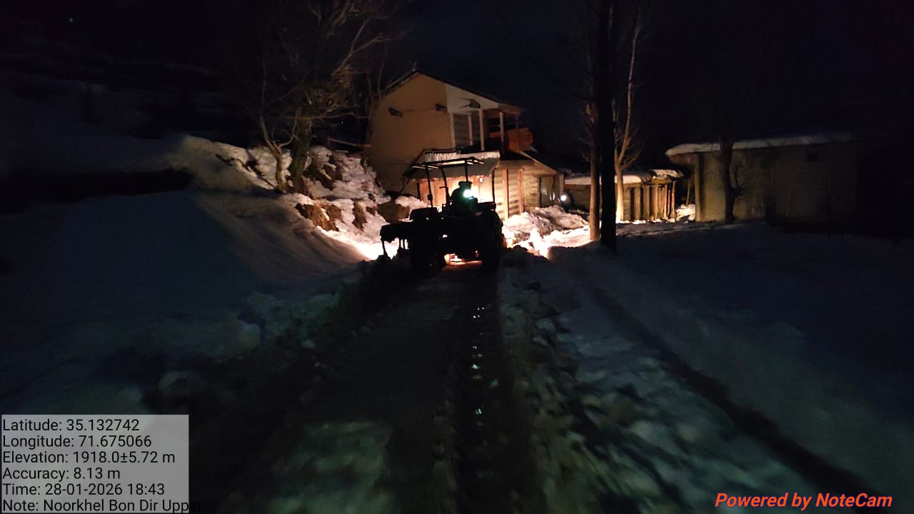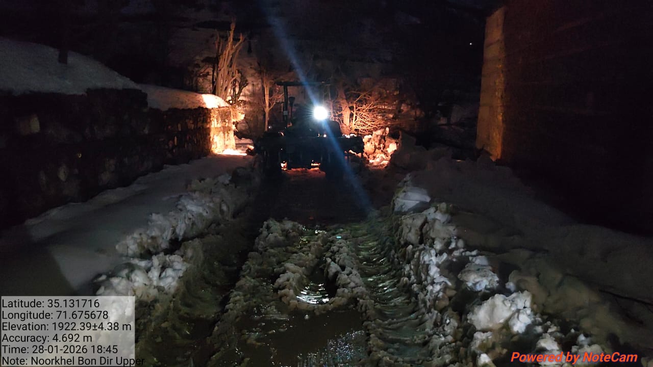 Fully restoredThis activity provides a detailed overview of the operational status of the Road Noorkhel Road Bin Dara, recorded on 23 January, 2026. The affected site is situated within the Dir Upper district, operating under the administrative jurisdiction of XEN DIR UPPER. The infrastructure has been primarily affected by Snow Clearance, encompassing a total span of 5 Kilometers.