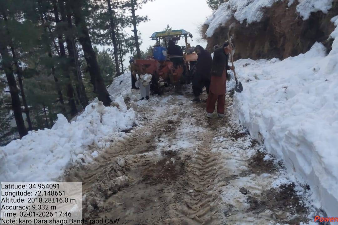 Fully restoredThis activity provides a detailed overview of the operational status of the Road KARODARA SHAGO BANDA ROAD, recorded on 26 January, 2026. The affected site is situated within the Dir Upper district, operating under the administrative jurisdiction of XEN DIR UPPER. The infrastructure has been primarily affected by Snow Clearance, encompassing a total span of 3 Kilometers.